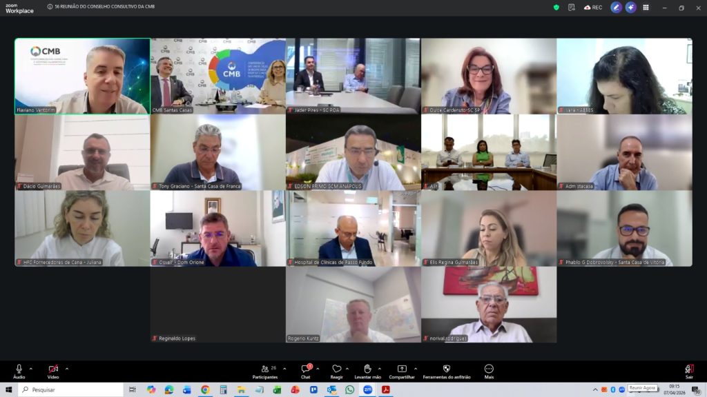 A Confederação das Santas Casas e Hospitais Filantrópicos (CMB) realizou, nesta terça-feira (7), a 56ª reunião do Conselho Consultivo. Por videoconferência, a reunião teve como ponto central a definição da nova condução do Conselho, órgão auxiliar do Conselho de Administração.
